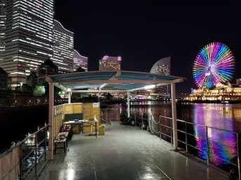みなとみらい周辺や港の灯りが水面に映る、幻想的な横浜のトワイライトまたは夜景をご覧いただけます。どこに連れて連れていかれてしまうのか・・(笑)